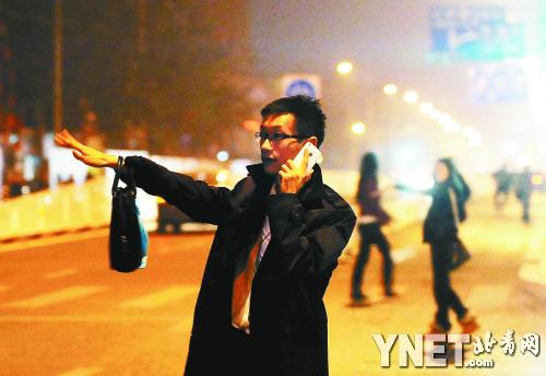 一見出租眾人伸手的景象在北京隨處可見攝影/本報(bào)記者 郝羿